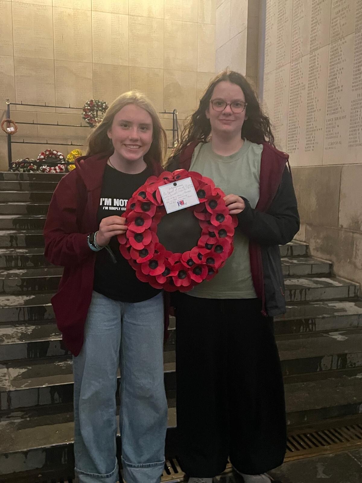After this we journeyed on to our hotel in Ypres, where the games room and comfortable rooms provided welcome relief from the thought-provoking visits of that first day. The day finished with attendance at the daily service of remembrance at the Menin Gate, where, accompanied by a choir, Mrs Syms-Evans, Anna McCallum (9King) and Ari Hayman (9Andrewes) laid another wreath on behalf of the School.