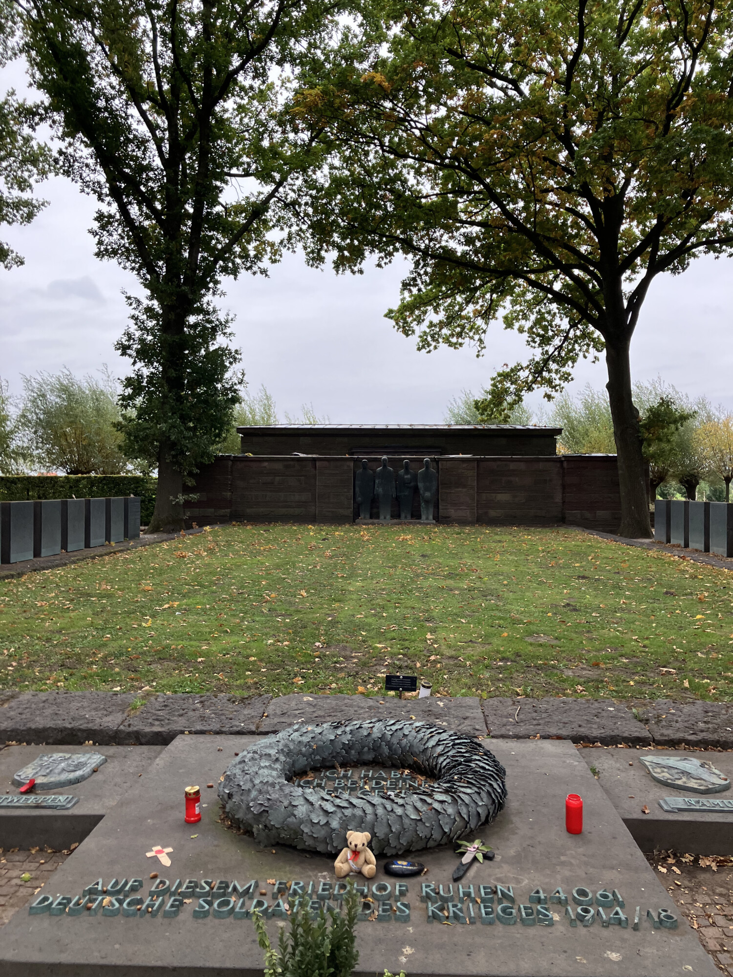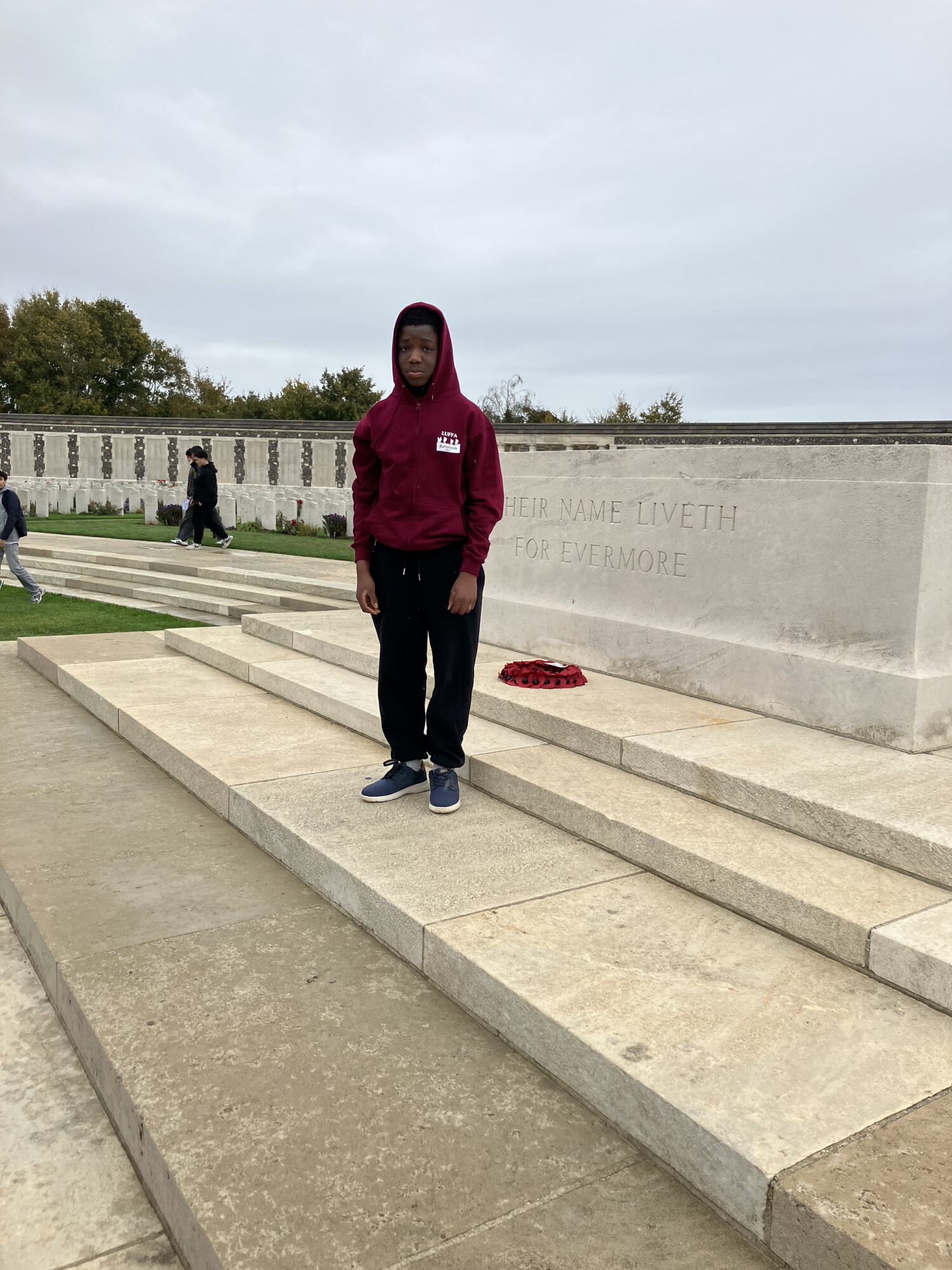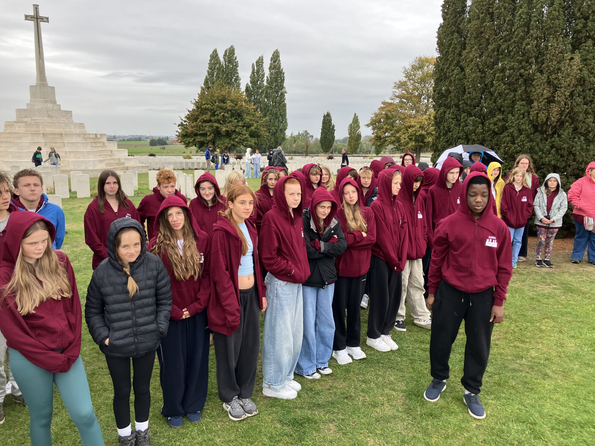 We embarked from Chichester, and after a delay caused by a data malfunction at Dover, finally embarked for Calais. After a short journey into Belgium it was time to visit sites associated with the horrors of the Passchendaele battlefields of World War One. After visiting Essex Farm Cemetery and seeing the grave of a 15 year old boy soldier, it was off to Tyne Cot, where 11000 graves and over 35000 names of the missing provided a moment to appreciate the enormity of the loss. Kayowa Nosiru (9King) laid a wreath on behalf of the School, and this was accompanied by a moment of prayer and reflection, after which students laid a cross on a grave of their choice (with thanks to the Technology Department for making these). From the 'glorious dead' of Tyne Cot, it was an abrupt contrast to see the mass graves at the German cemetery of Langemark, where a burial of over 20000 proved a hard site to take in.