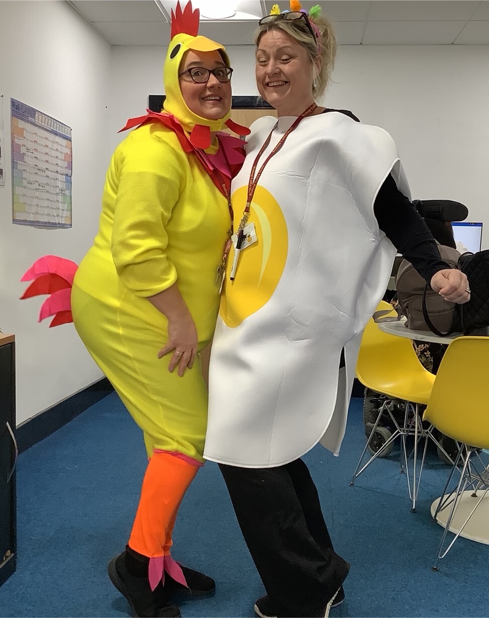 On Wednesday lunchtime we held a Scavenger Hunt around school which was enjoyed by everyone who took part. The week finished with 'Dress as a Chicken (or wear something yellow) Day'. There were some fabulous outfits, including Alfie Acquah (10Andrewes), Karina Bovkun (8Sherborne), Fern Carter (7Story) and Harry Edwards (10Ridgeway), together with numerous members of staff.